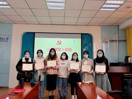 赛后学办丁晓晓老师对此次活动进行了总结,丁老师从活动意义和目的、活动形式和内容以及选手的表现等方面给予高度肯定,指出:“党的十九届六中全会全面总结了中国共产党的百年奋斗重大成就和历史经验,也对我们接班人提出了希望,通过今天的党史知识竞赛,同学们深入、全面地学习了党史,大家应该以史为鉴、开创未来,赓续党的红色血脉,弘扬党的优良传统,自觉做习近平新时代中国特色社会主义思想的坚定信仰者和忠实实践者,将埋头苦干、勇毅前行的品质融入到我们当下的学习和生活中,发挥护理人的责任和使命,力争成为健康中国的建设者和接班人。”